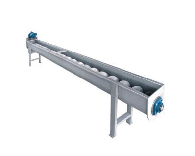 該機由筒體(筒體設計形式有“U”型敞口或加蓋、“O”型密封兩種)、螺旋輸送軸、端蓋、動力傳動裝置等部分組成。設備全部采用優質不鏽鋼材料製作,結構簡單,運行平穩可靠,廣泛適用於各種幹濕物料的水平或傾斜輸送。在輸送原料是蘋果、梨等水果時,輸送葉片四周焊接不鏽鋼圓,以防原料在輸送過程中被葉片切碎。